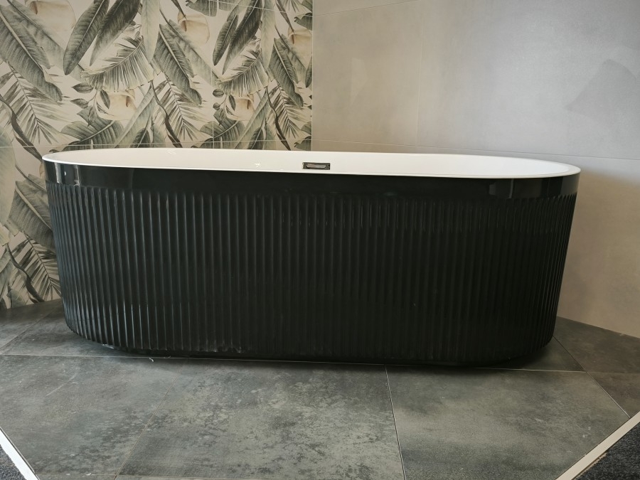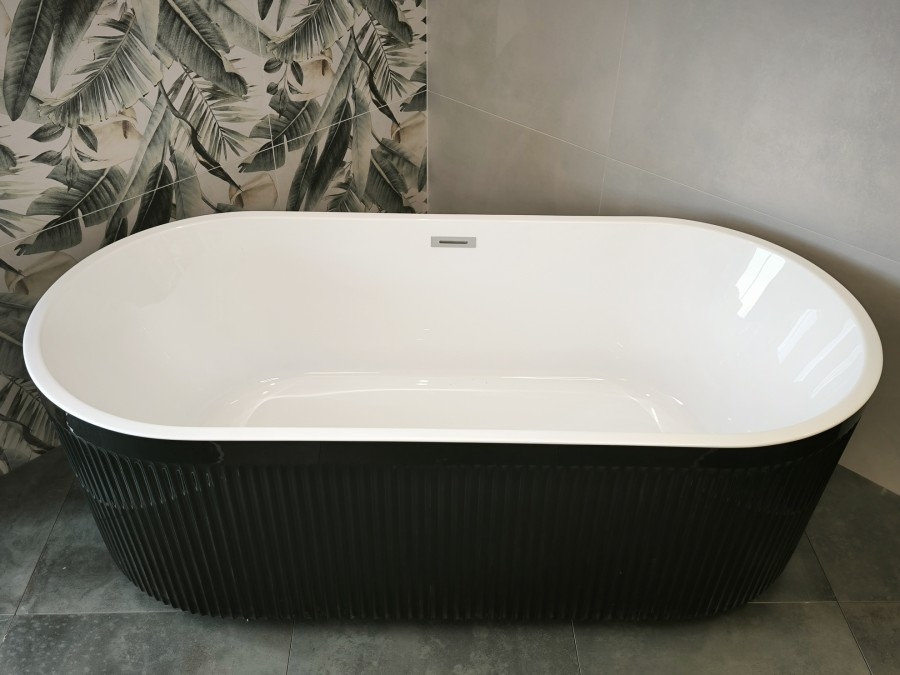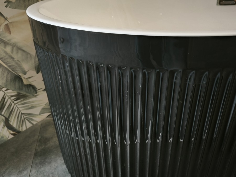 Tendance Cannelée : Le tablier extérieur arbore un motif cannelé (ou à rainures verticales) audacieux qui joue avec la lumière, ajoutant une profondeur et un caractère unique à la baignoire.