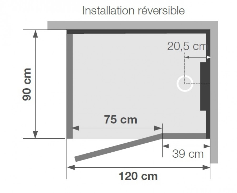 Hauteur receveur : 8 cm (16.5 cm avec le kit rehausse)