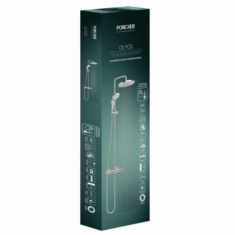 Colonne de douche thermostatique OLYOS II, de marque PORCHER