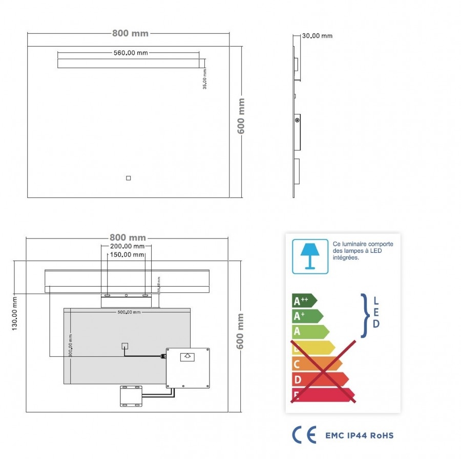 - 1 Miroir éclairant KATHY - 80x60 cm