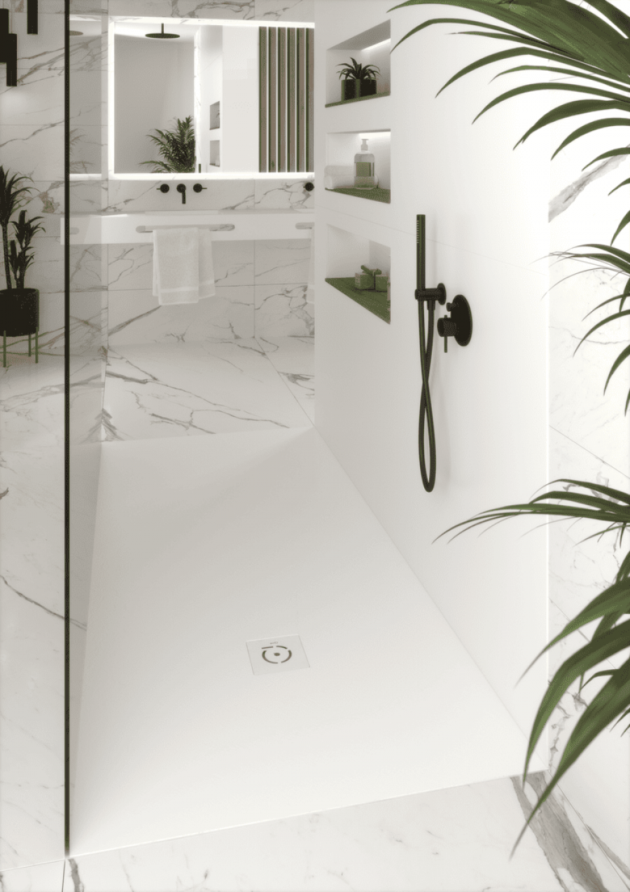 Dans la finition du receveur de douche.