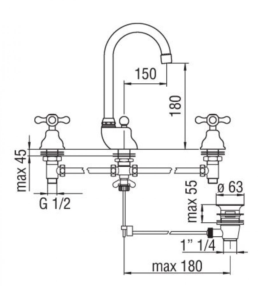 Mélangeur lavabo 3 trous rétro chromé Grazia GRC5012/1CR