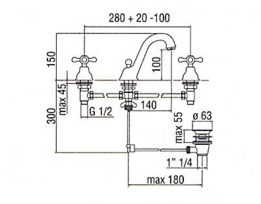 Mélangeur lavabo 3 trous style rétro, gamme Grazia de marque NOBILI