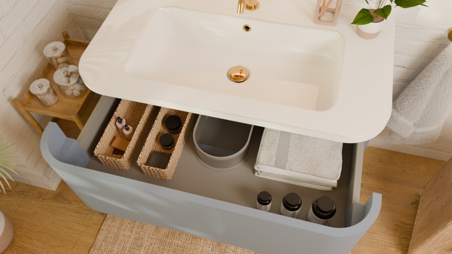 Organisation personnalisée : Le tiroir supérieur est conçu pour accueillir vos accessoires quotidiens tout en laissant passer le siphon.