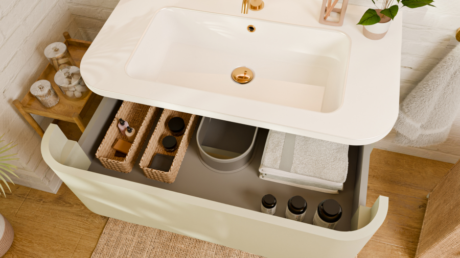 - Design précis : Le plan vasque épouse parfaitement les courbes du meuble pour une finition haut de gamme et un toucher soyeux.