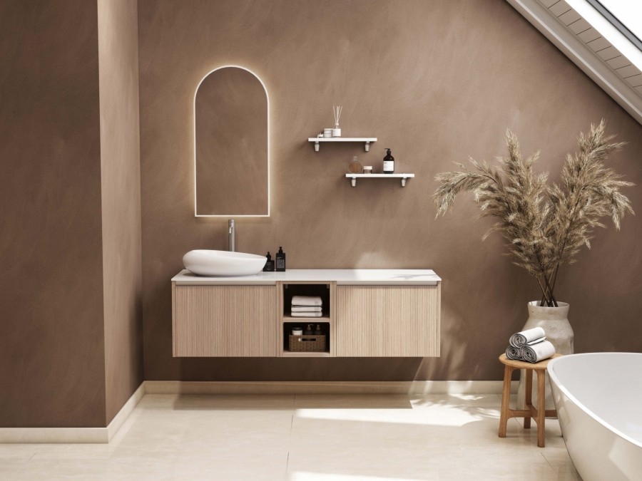 Vous pouvez choisir votre plan vasque en therme de matière et de forme de la vasque : céramique ou marbre reconstitué.