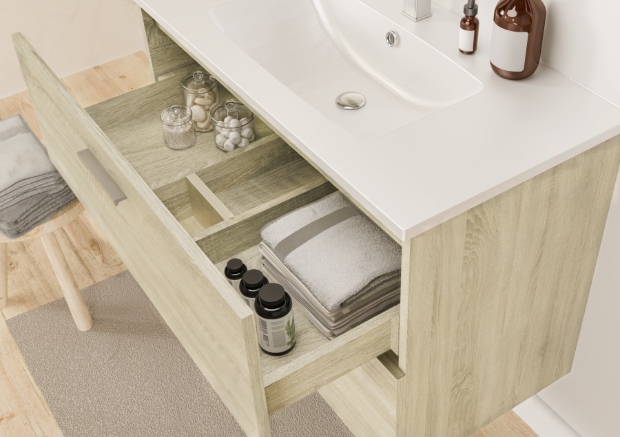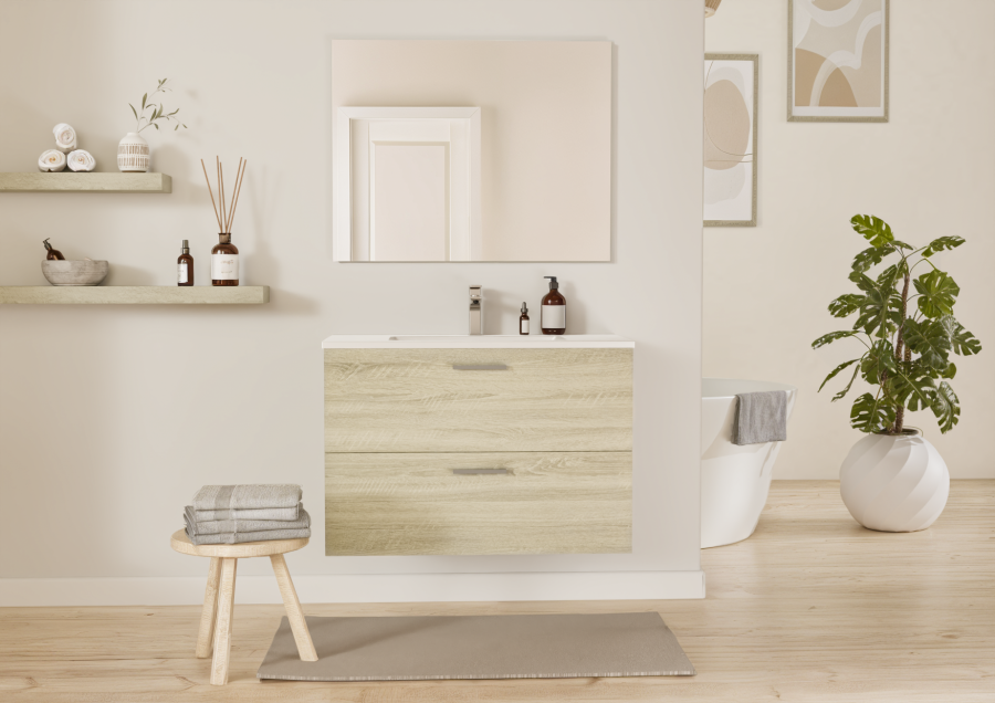- 1 Meuble sous-vasque TIXIKIT 80 Bois Clair 2 tiroirs