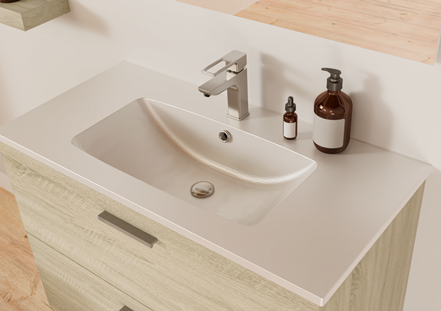 Fabriqué en céramique de haute qualité, ce plan vasque garantit une durabilité exceptionnelle. Le grès émaillé est reconnu pour sa résistance aux chocs, aux rayures, et aux produits chimiques. Sa surface non poreuse assure une hygiène impeccable et un nettoyage ultra-facile (anti-calcaire).