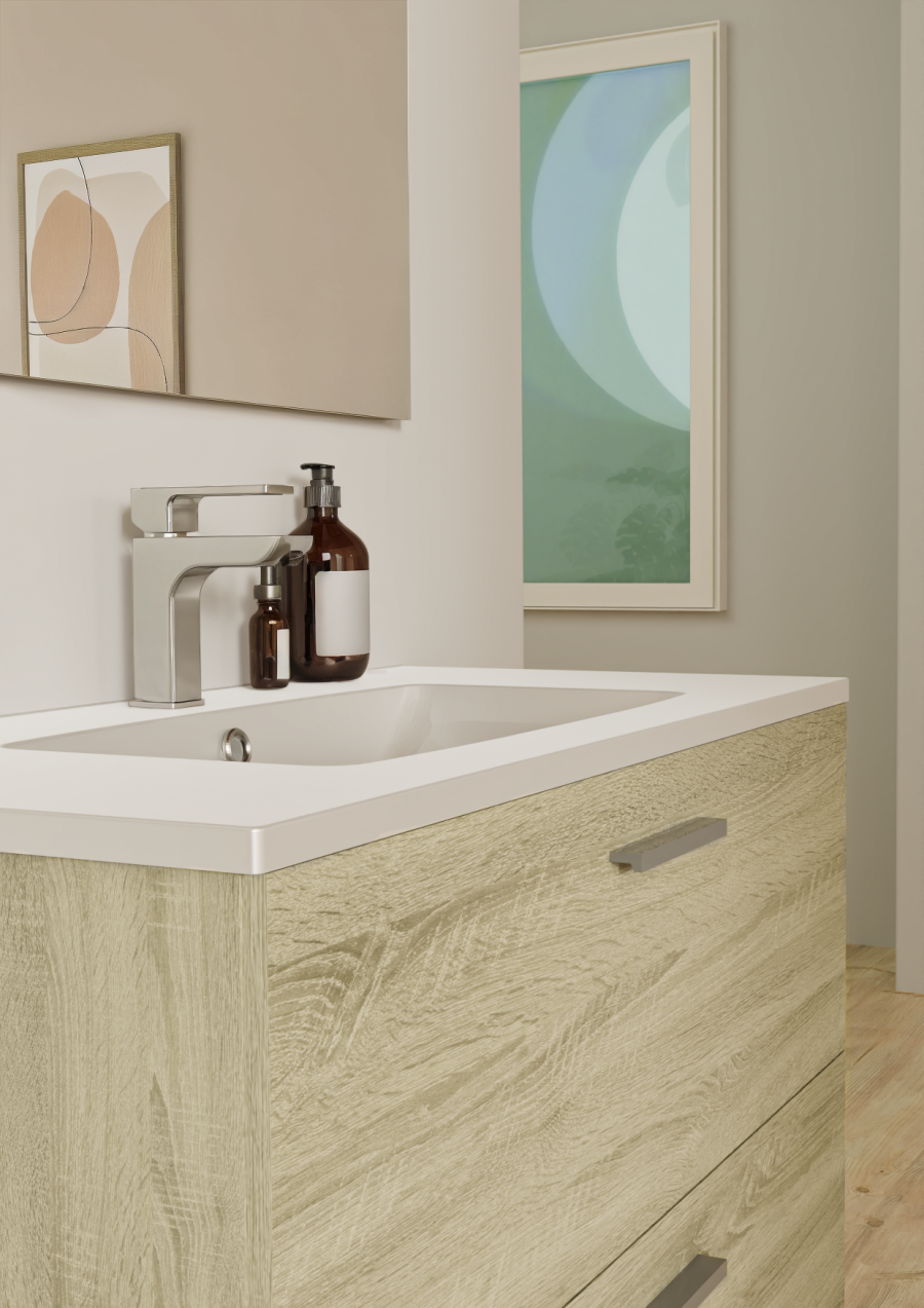 Découvrez notre meuble de salle de bain suspendu, la solution idéale pour allier design contemporain et gain de place dans les petites salles d'eau ou pour ceux qui recherchent une silhouette épurée.