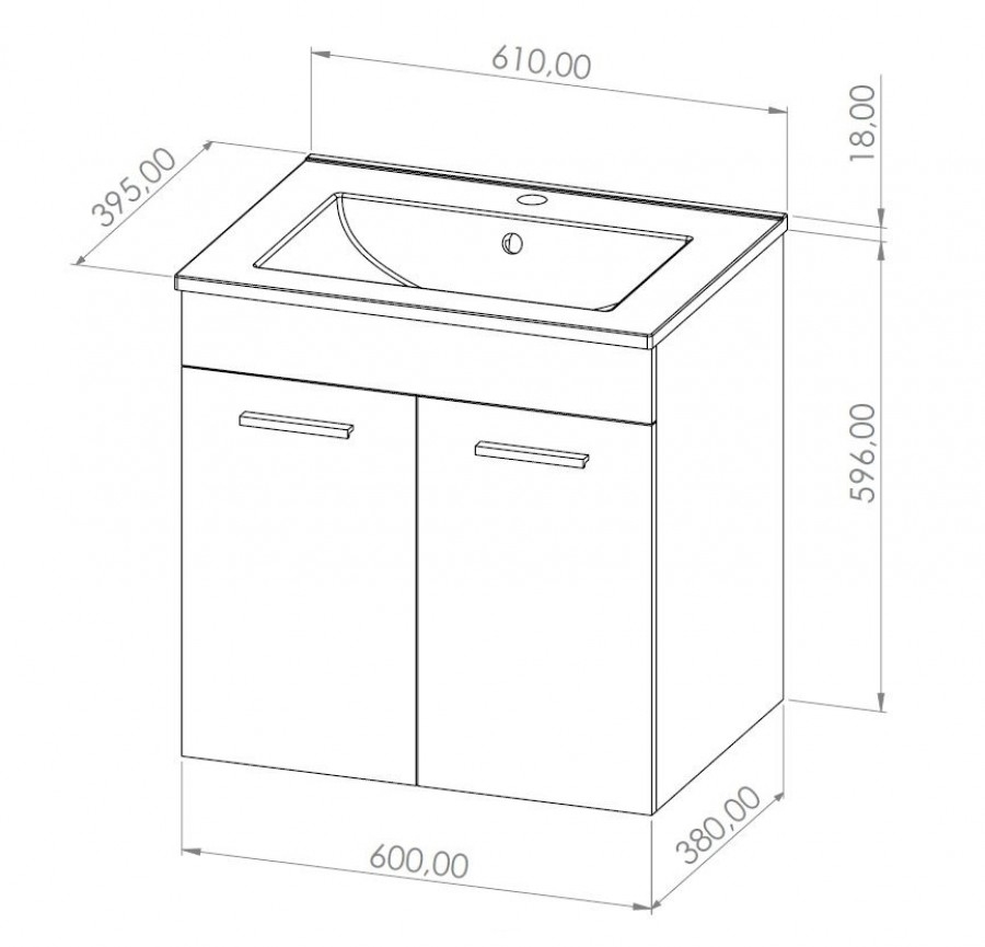 Dimensions : L 600 x P 380 x H 596 mm