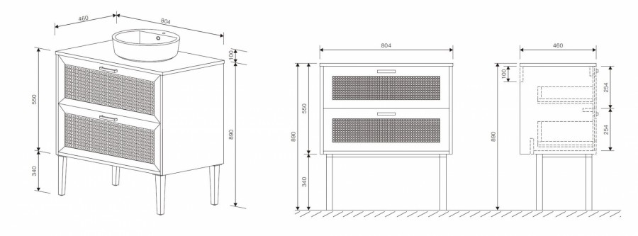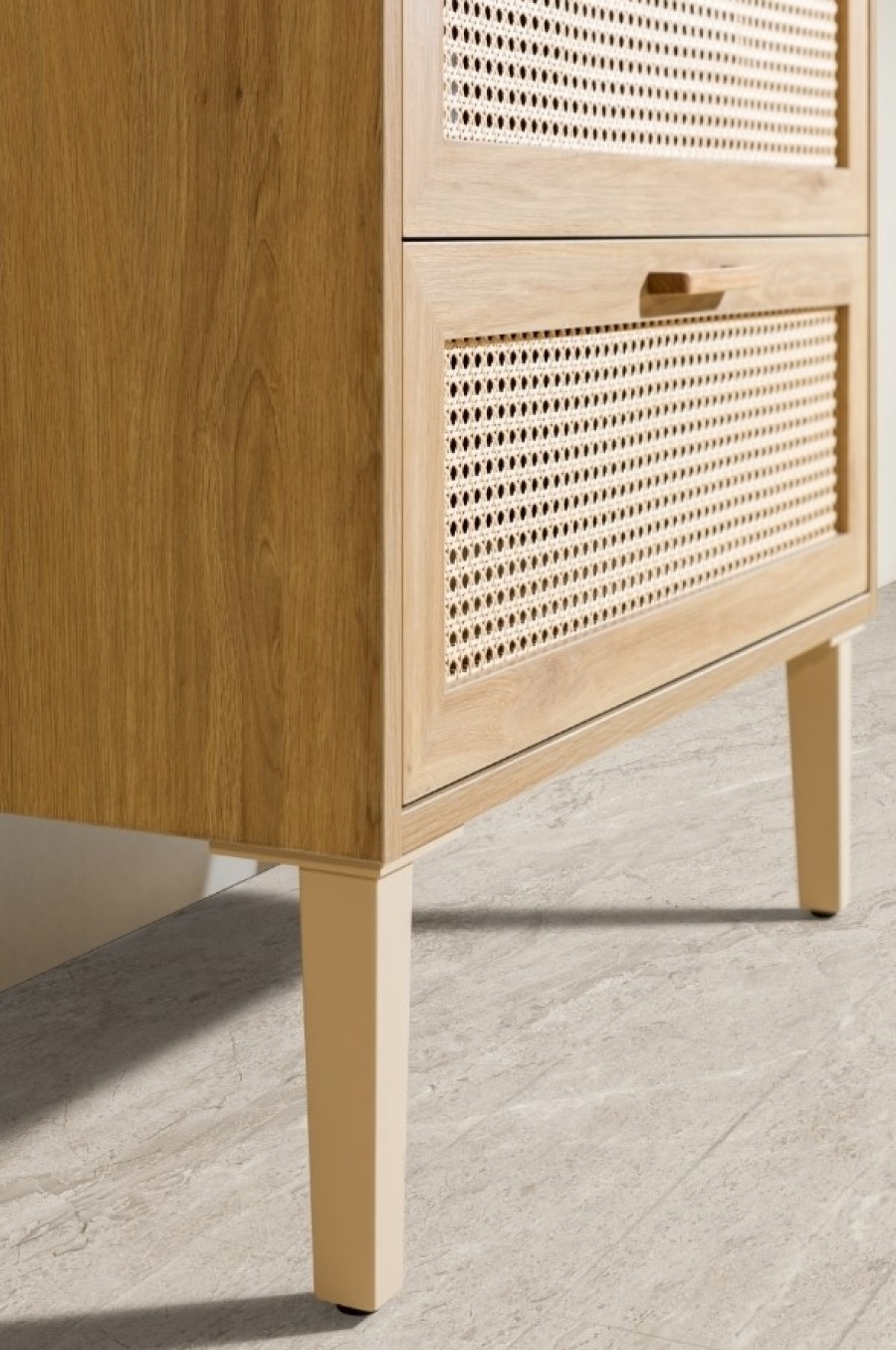 Donnez un cachet unique à votre salle de bains avec ce magnifique meuble sous-vasque de 80 cm, alliant la chaleur du chêne clair au charme intemporel du cannage.