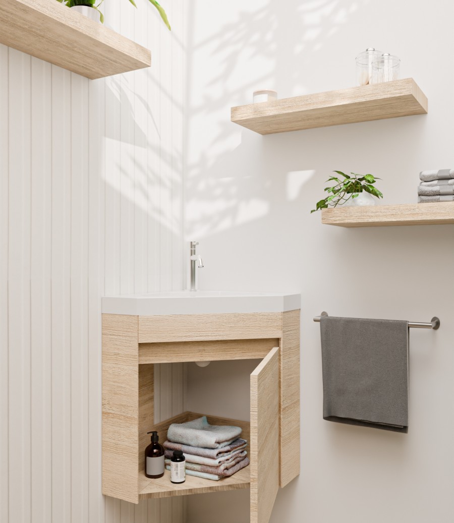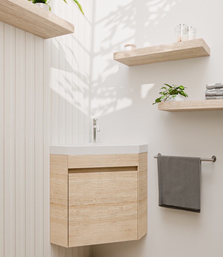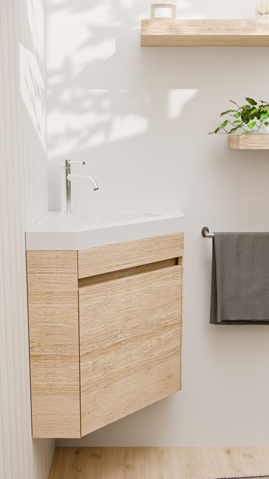 Meuble lave-mains d'angle ANGLEO Bois Clair