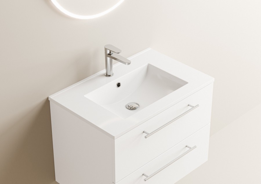 Meuble de salle de bain suspendu blanc brillant – 2 tiroirs modernes avec rangement optimisé, de la marque SANITAIRE