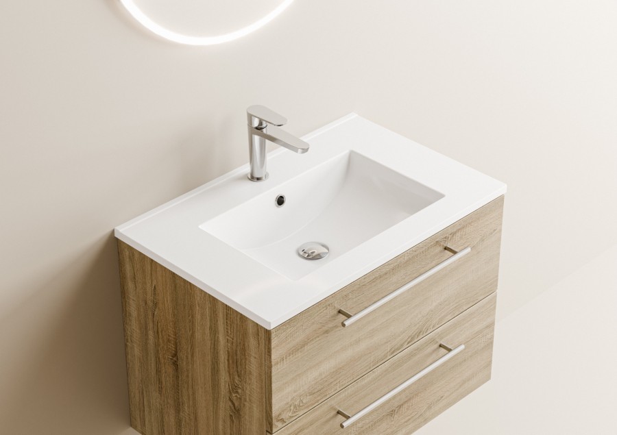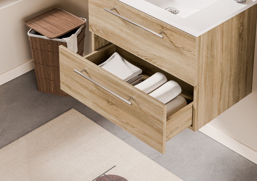 Meuble de salle de bain suspendu Bois Clair – 2 tiroirs modernes avec rangement optimisé, de la marque SANITAIRE