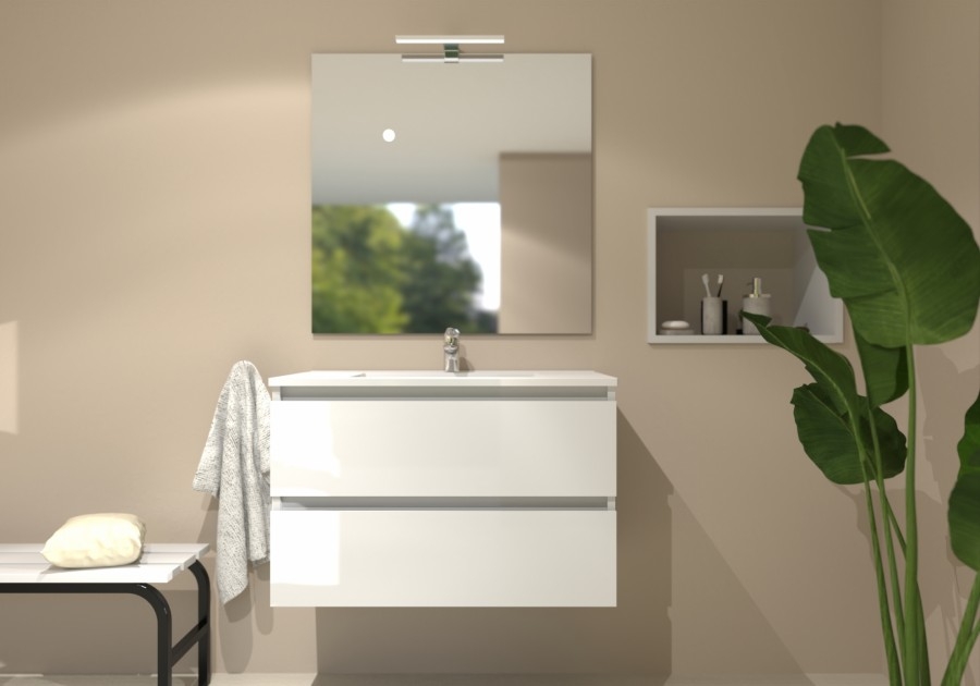 Meuble simple vasque HALO 2T 80cm Blanc Brillant