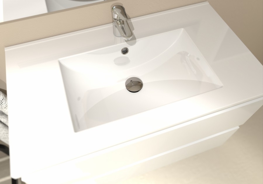 - 1 Meuble sous-vasque HALO 2 Tiroirs Blanc Brillant 80cm