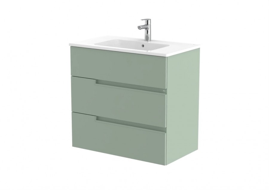 Meuble simple vasque 3 tiroirs Victoria-N – Vert Sauge Mat 80cm