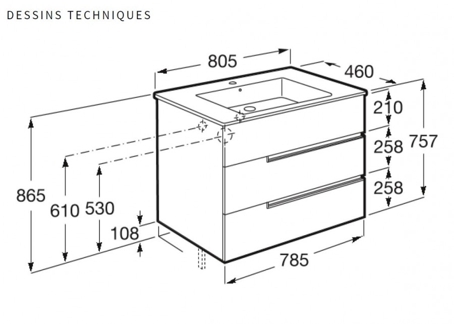 Dimensions du meuble : L785 x P460 x H757 mm.