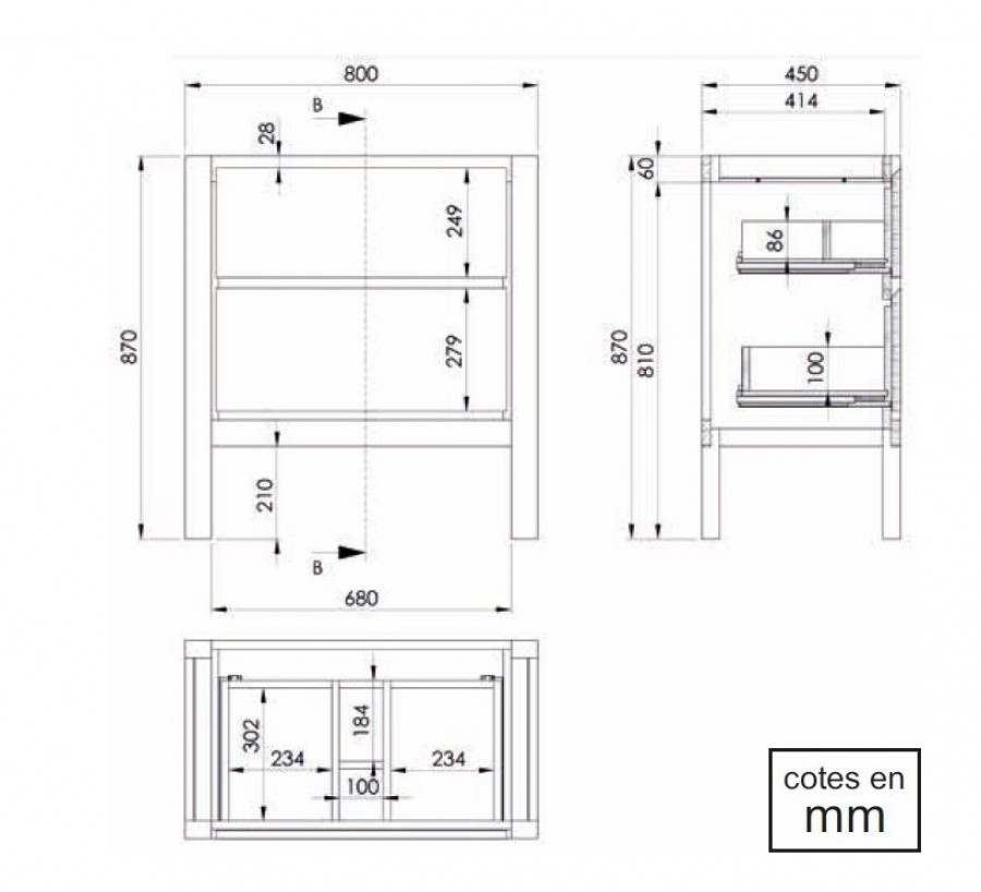 Dimensions disponibles : L800 x H870 x P450 mm.