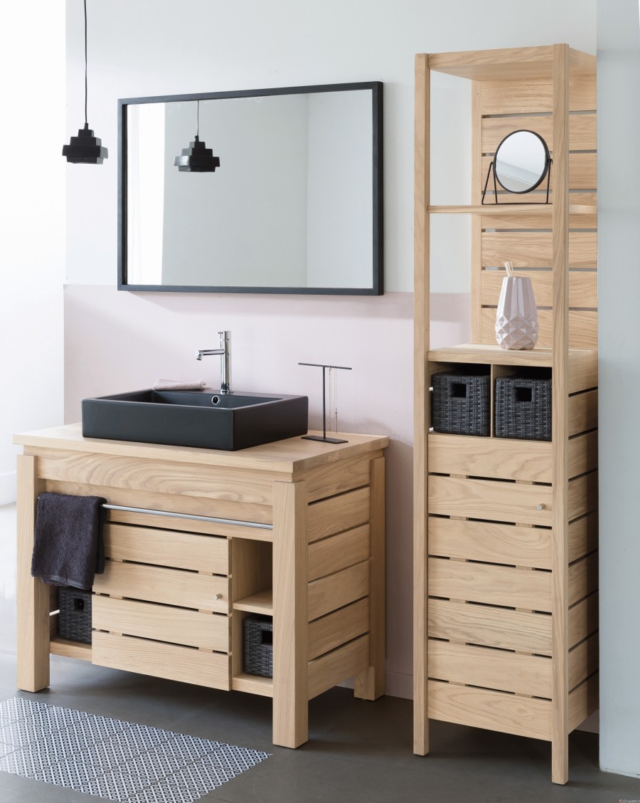 Meuble simple vasque ORIGIN 101 cm en Chêne massif avec vasque à poser, de la marque LINE ART