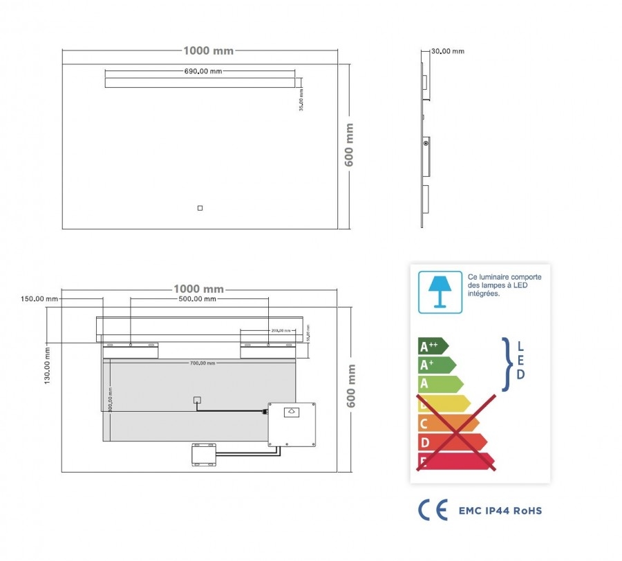 - 1 Miroir éclairant KATHY - 100x60 cm