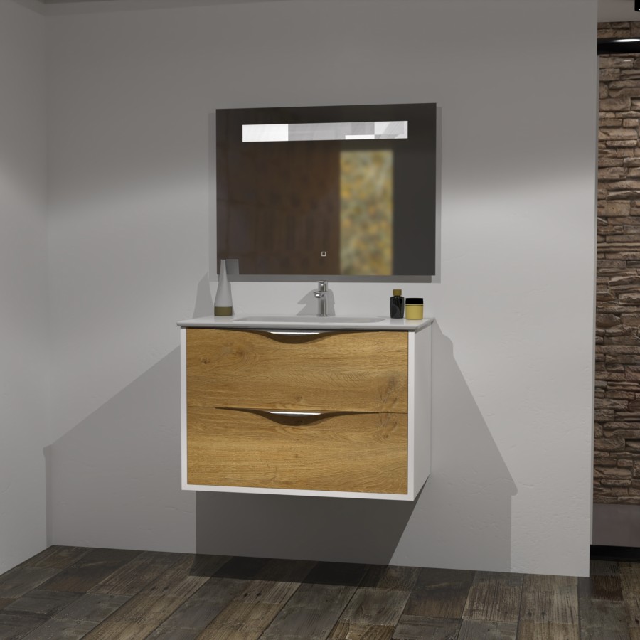 Meuble LE FRENCH Blanc/Chêne Clair avec Miroir antibuée - 80cm
