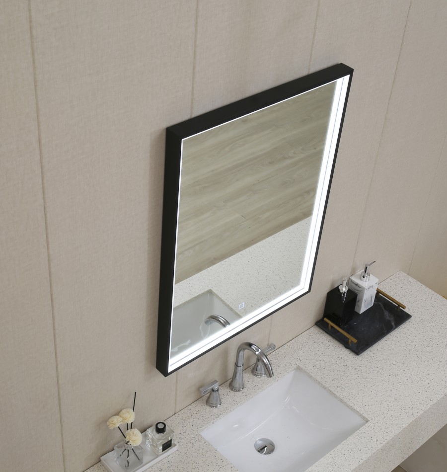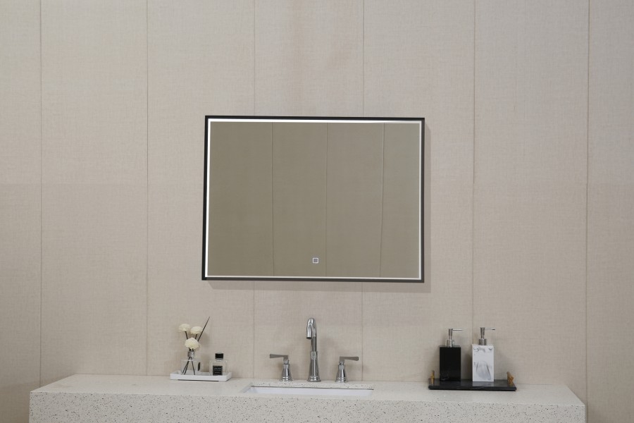Description : Miroir avec cadre Noir Mat QUADRO rétroéclairé LED - 120cm