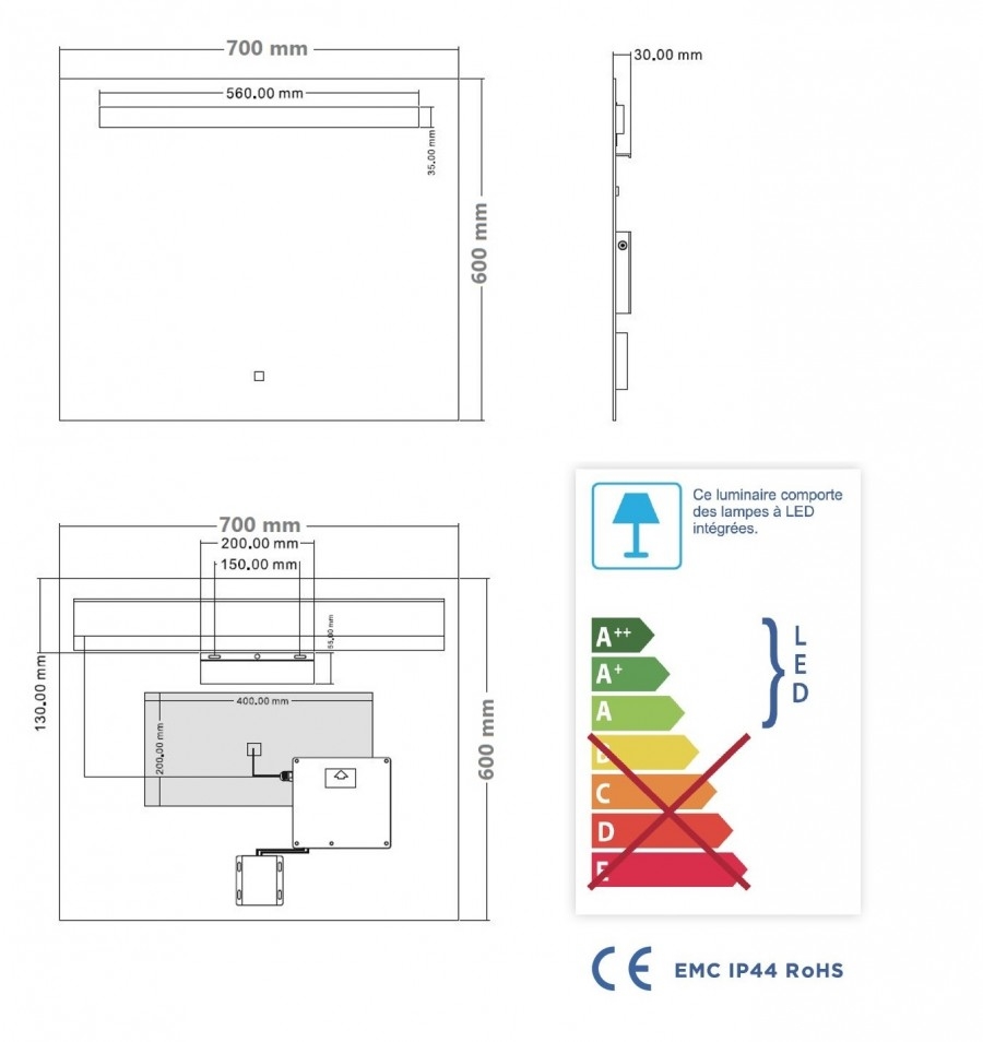 Avis client : Miroir éclairant KATHY - 70x60 cm