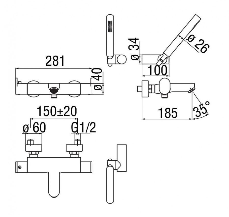 Mitigeur bain/douche thermostatique UPDe, de la marque NOBILI