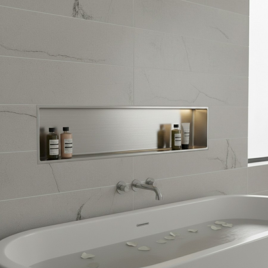 La niche en acier inoxydable élargit l'espace de rangement de votre salle de bain tout en la rendant confortable et moderne.
