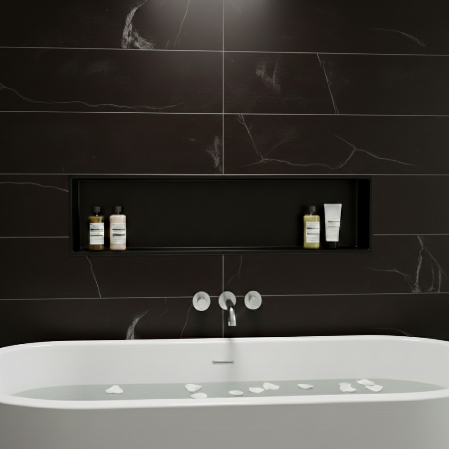 Description : Niche murale de douche, étagère encastrable douche acier Noir Mat - 30x90cm