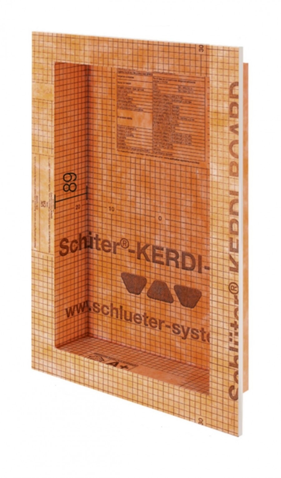 Schlüter-KERDI-BOARD-N : les niches murales étanche prêt à poser : solution idéale pour réaliser des étagères/rangements dans l’espace douche par exemple.
