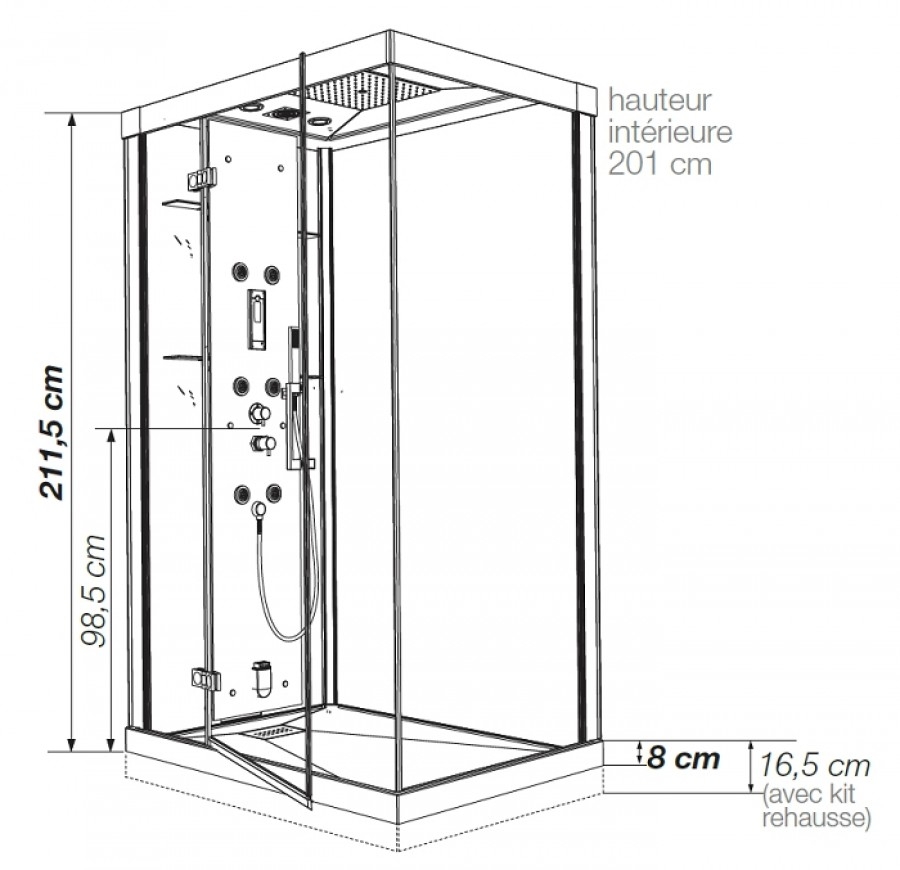 Dimension cabine : 120 x 90 x 211.5 cm