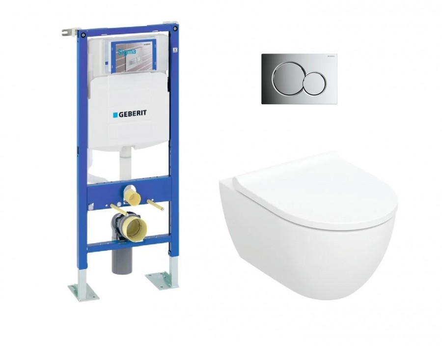 Pack complet WC Geberit UP320 + Cuvette ACANTO TurboFlush + Plaque Chromé Brillant