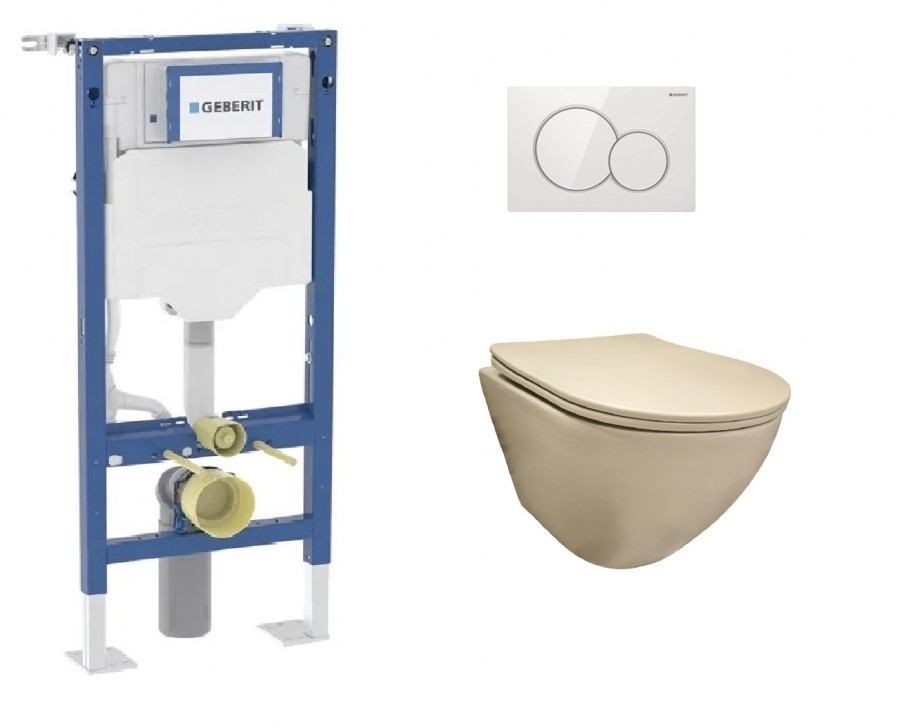 Pack Geberit UP320 + Cuvette KELOS Flush Beige Mat+ Plaque Sigma Blanche
