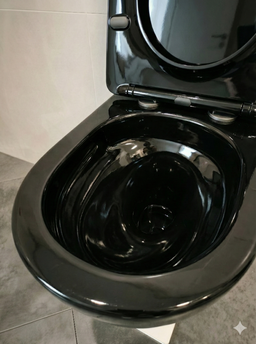 - 1 Cuvette suspendue sans bride KELOS Flush Noir brillant avec abattant