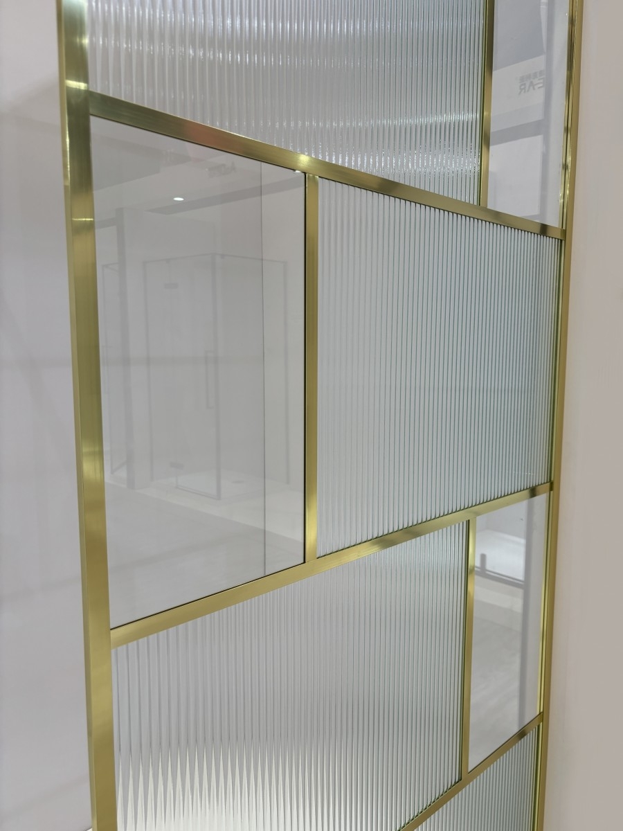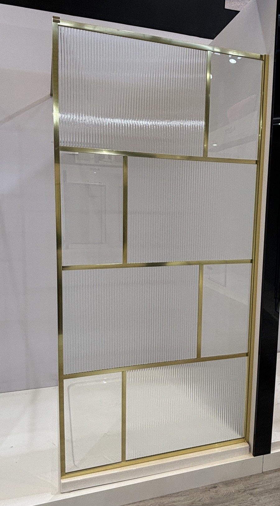 Description : Paroi de Douche Fixe ART DECO - Verre en Relief & Profilé Or Brossé - L120cm