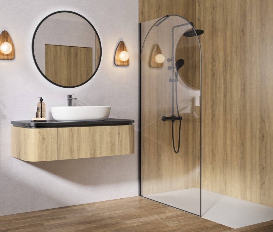 La paroi Arkade rompt avec la monotonie des lignes droites. Sa courbe et sa sérigraphie en arche doré apporte une touche de noblesse et de douceur, créant un écrin luxueux pour votre espace bien-être. Sa structure fine mais robuste souligne avec précision la zone de douche tout en conservant une sensation d’ouverture et de légèreté.