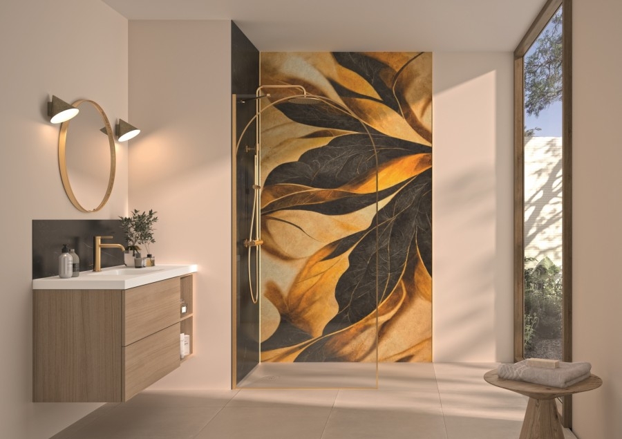 La paroi Arkade rompt avec la monotonie des lignes droites. Sa courbe et sa sérigraphie en arche doré apporte une touche de noblesse et de douceur, créant un écrin luxueux pour votre espace bien-être. Sa structure fine mais robuste souligne avec précision la zone de douche tout en conservant une sensation d’ouverture et de légèreté.