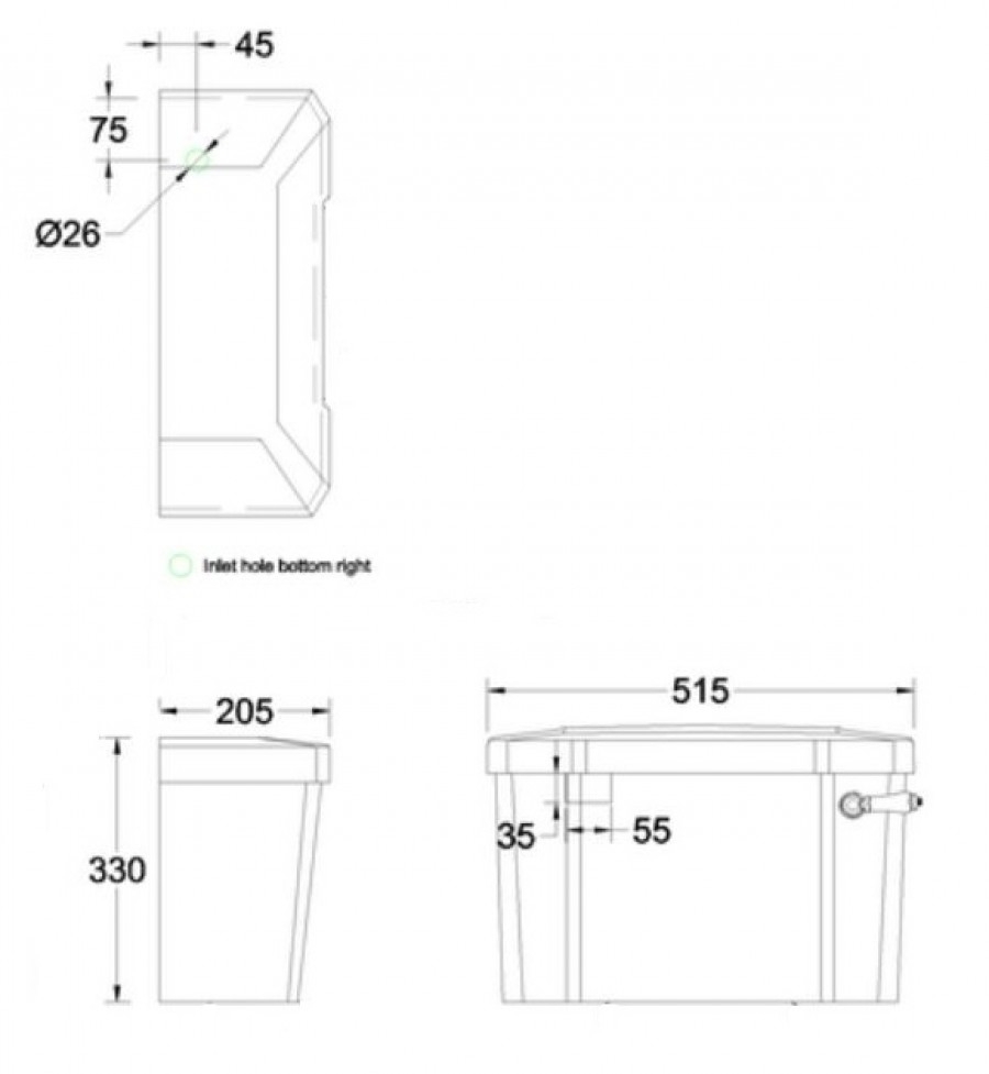 Description : Réservoir WC 510 bas rétro Burlington avec levier chromé/blanc - C1
