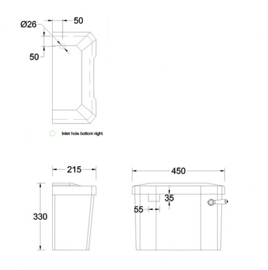 Description : Réservoir WC compact/bas rétro Burlington avec levier - C3