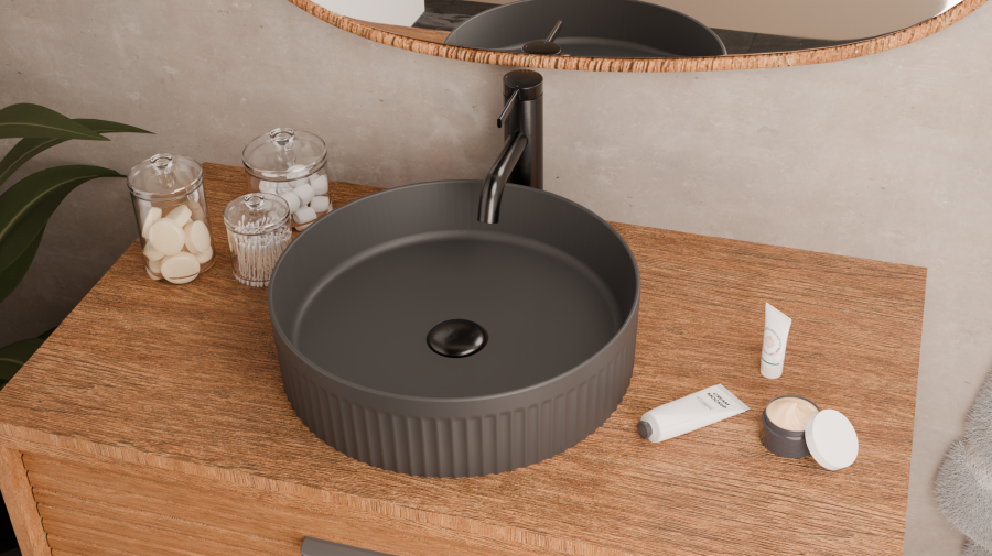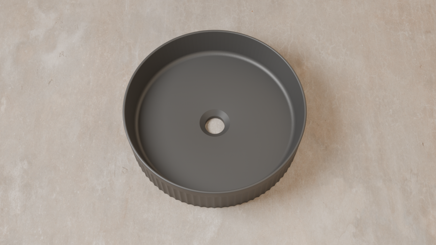 Vasque à poser cannelée BEYOND Ø 40 cm Gris Foncé Mat
