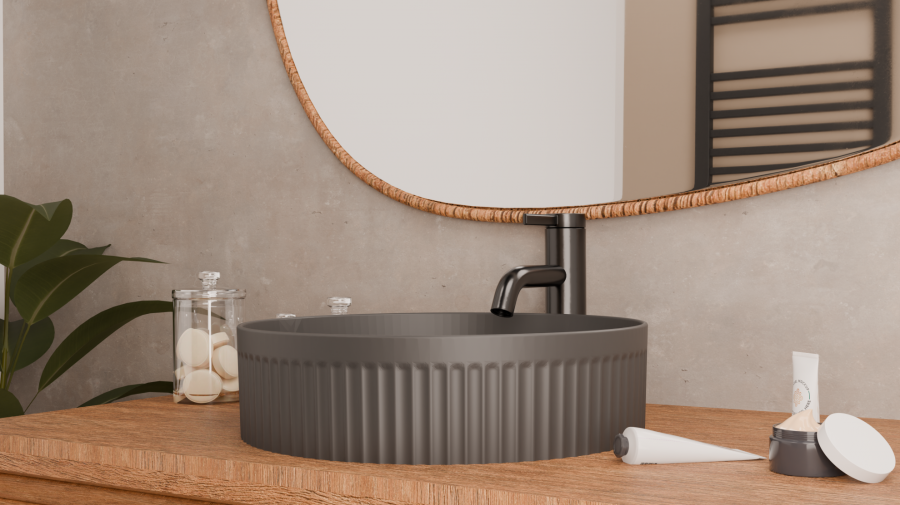 Description : Vasque à poser cannelée BEYOND Ø 40 cm Gris Foncé Mat