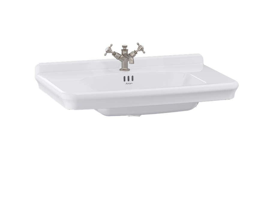 Description : Vasque en céramique rétro GUILD 85cm - 3 Trous de robinetterie